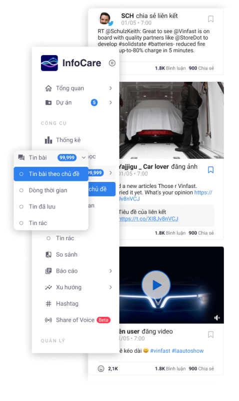 InfoCare thu thập thông tin từ các nguồn rộng lớn trên website như diễn đàn, blog, trang web tin tức, trang web đánh giá review, cũng như các kênh truyền thông xã hội – xác định mọi trường hợp khi một từ khóa bạn chọn được đề cập.