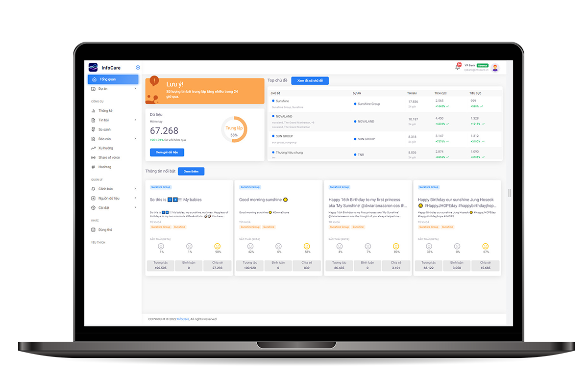 Nhận thông tin truyền thông xã hội 360° để hiểu hơn về thương hiệu, thị trường và insight khách hàng, từ đó có thể tạo ra các tương tác tích cực ở mọi điểm tiếp xúc – từ tiếp thị đến chăm sóc khách hàng.